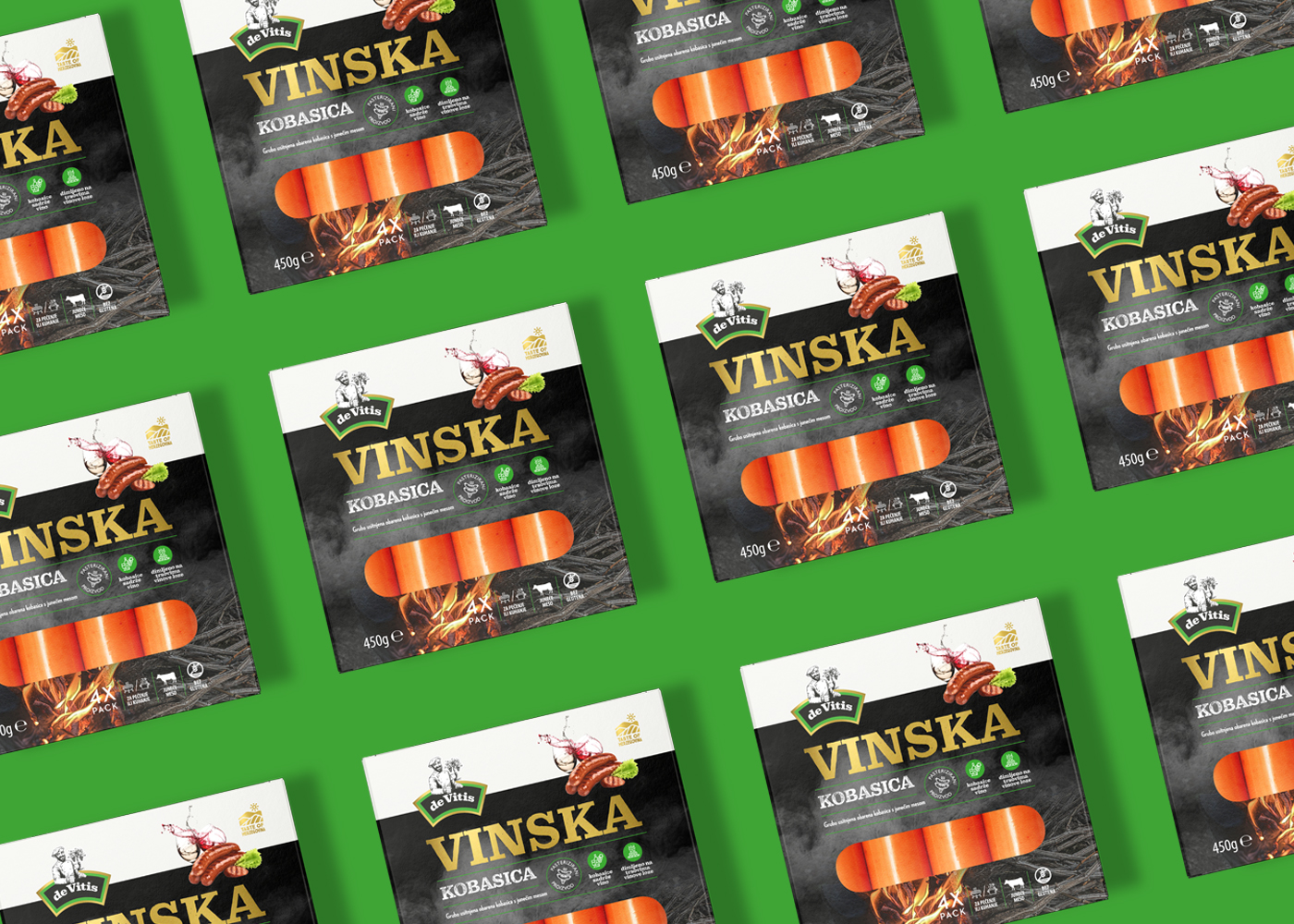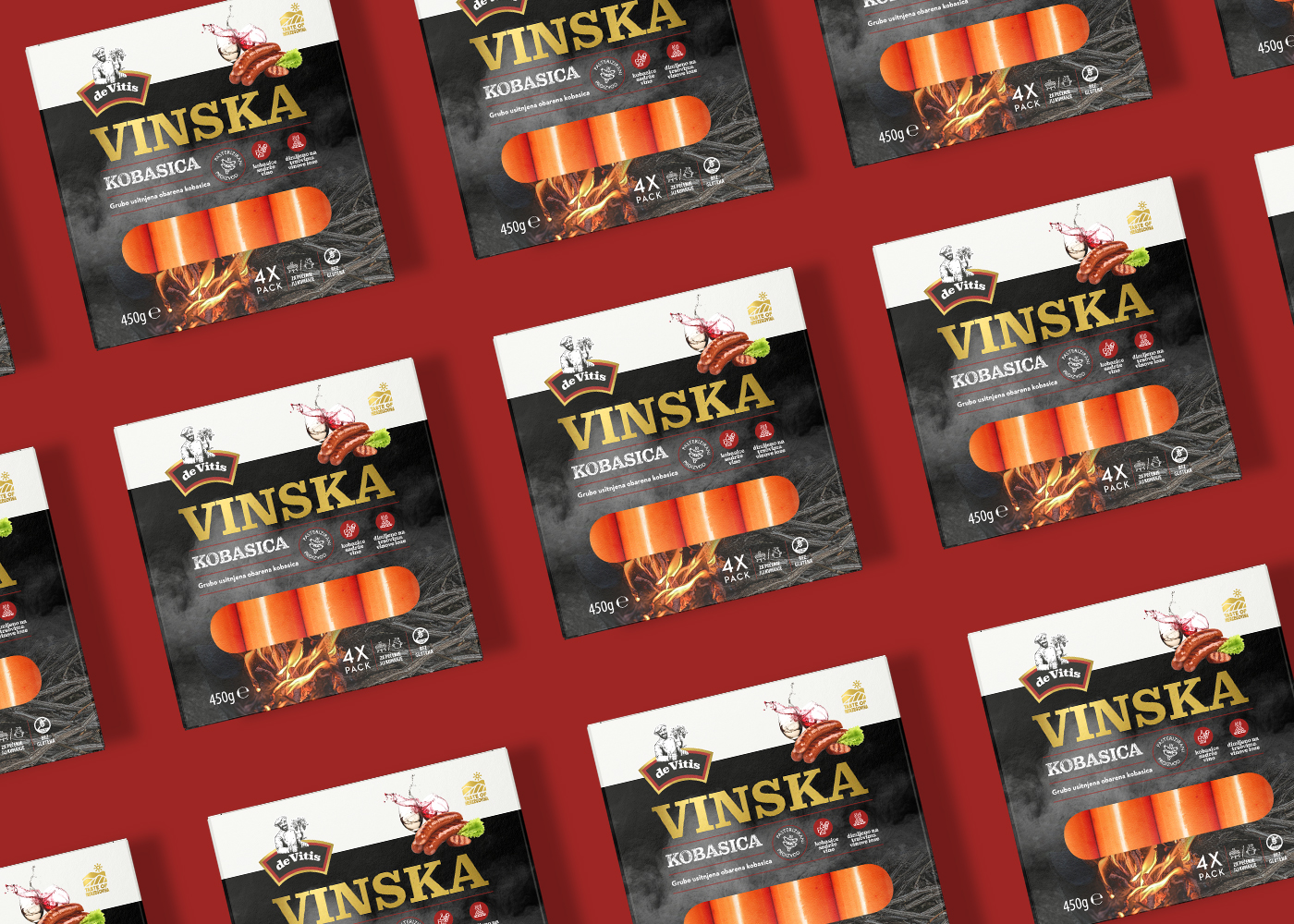 The emphasis was on dry and semi-dry sausages, and on wine sausage, which is actually the crown of this brand - a product that has not been present on the market so far and it is a sausage that contains wine as one of the ingredients. In addition, inside the vacuum-packed package, there is a piece of grape vine, which makes this product recognizable on the market. All products, regardless of shape, size and packaging, retain their recognizability and brand affiliation due to the design system, which is at the same time flexible but still clearly and technically defined.