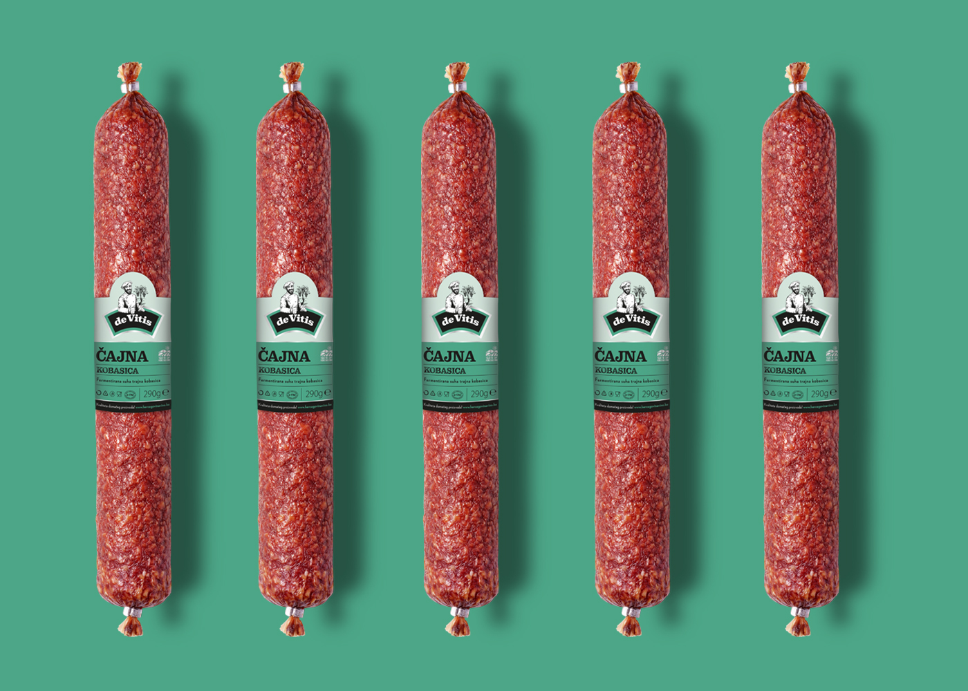 DeVitis is a new meat products brand with its main characteristic being an unusual smoking method - that grape vine cuttings are used to dry the meat products into high-quality delicacy. The deVitis product line is in perfect harmony with the assortment of the wine producer Hercegovina vino. After harvesting the grapes for wine production, the old trees are cut and used as a fuel for drying the meat products.