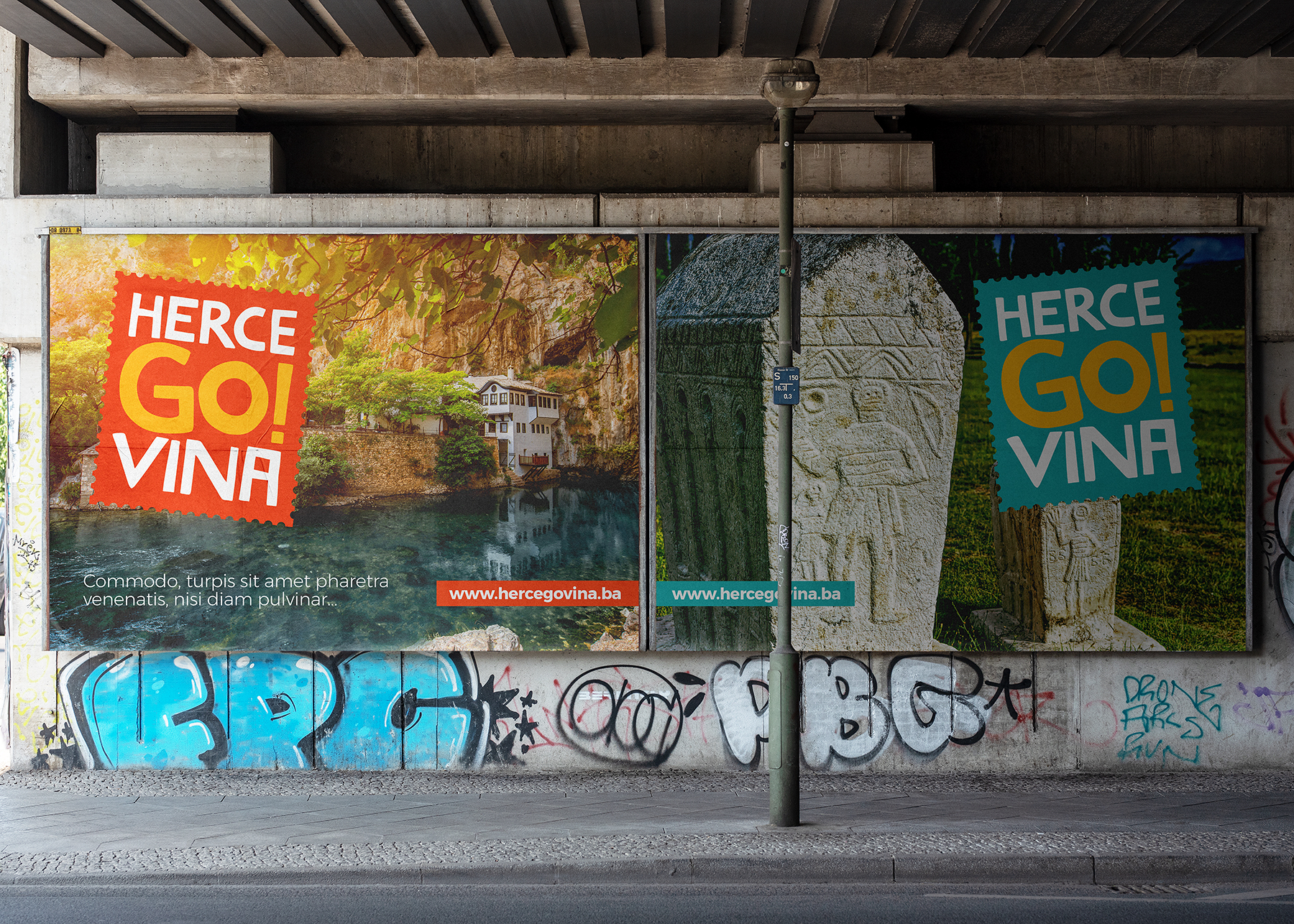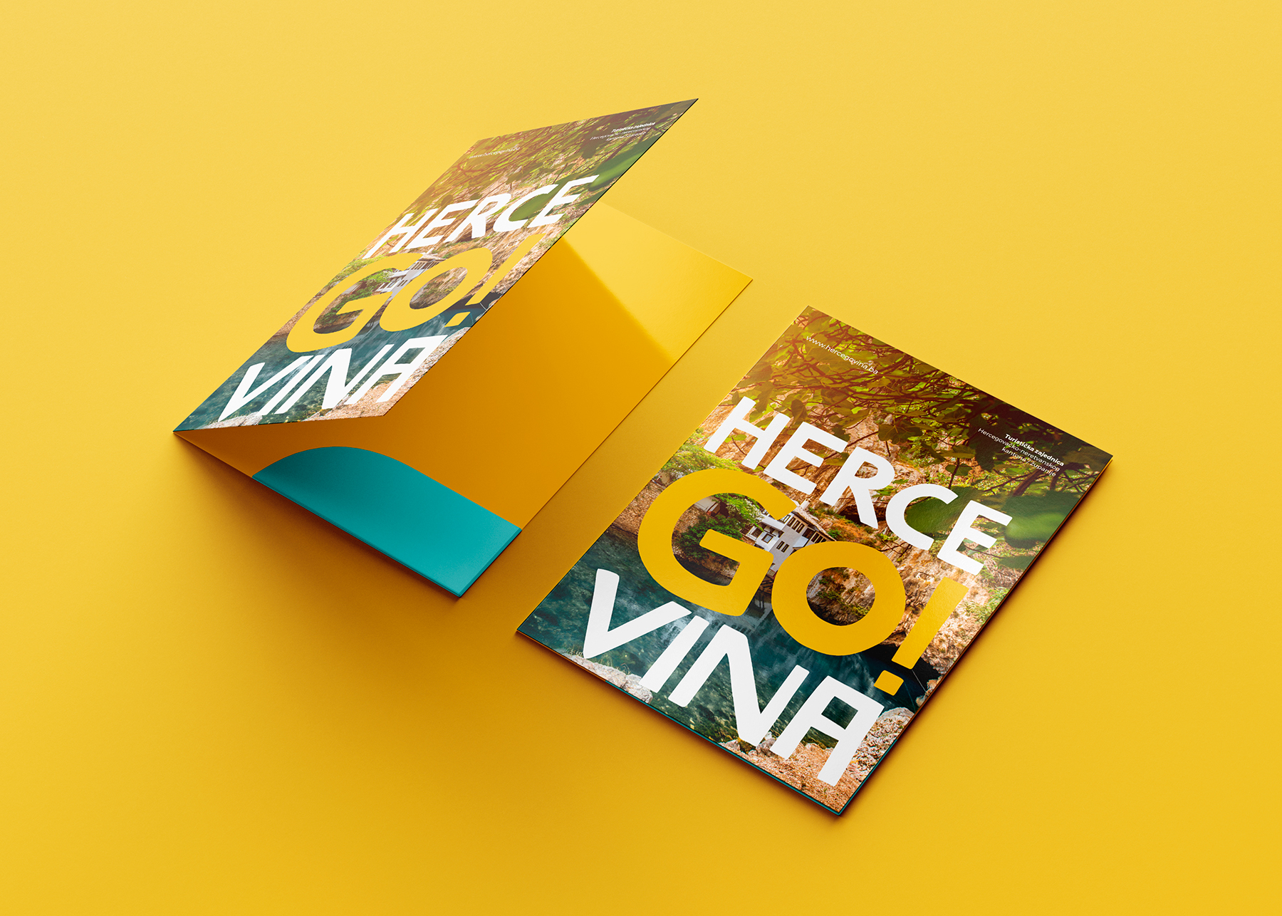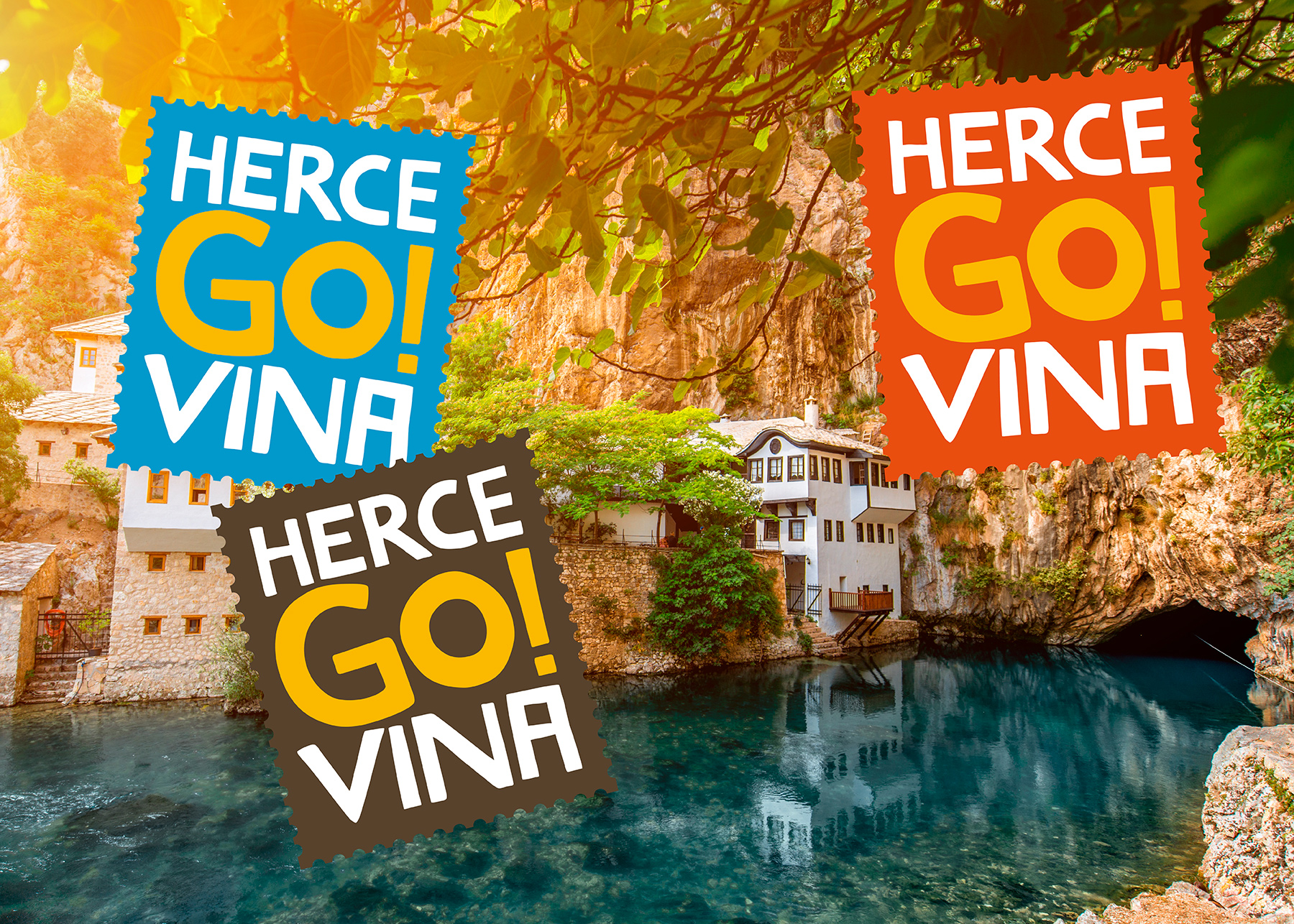 Our client showed an understanding of the importance that brand communication plays in the region's tourism promotion success, as the key to making a tourism brand successful is to make sure it "speaks" to its international audience. Shift started with exploring and considering a range of feelings and words that tourists may connect with Herzegovina, followed by the features that Herzegovina is known for. We furthermore defined the Herzegovinian mood primarily by utilizing colours for symbolic effect. Using the colours blue and yellow to express the natural features of the river Neretva and the sunny climate helps the brand communicate even more effectively. One of the most valuable features of this visual identity is that the effect of this typographic logo is universal — even across languages. The "GO" within the name makes a recognizable verbal identity and it is emphasized as a universal call to action for the global traveller.