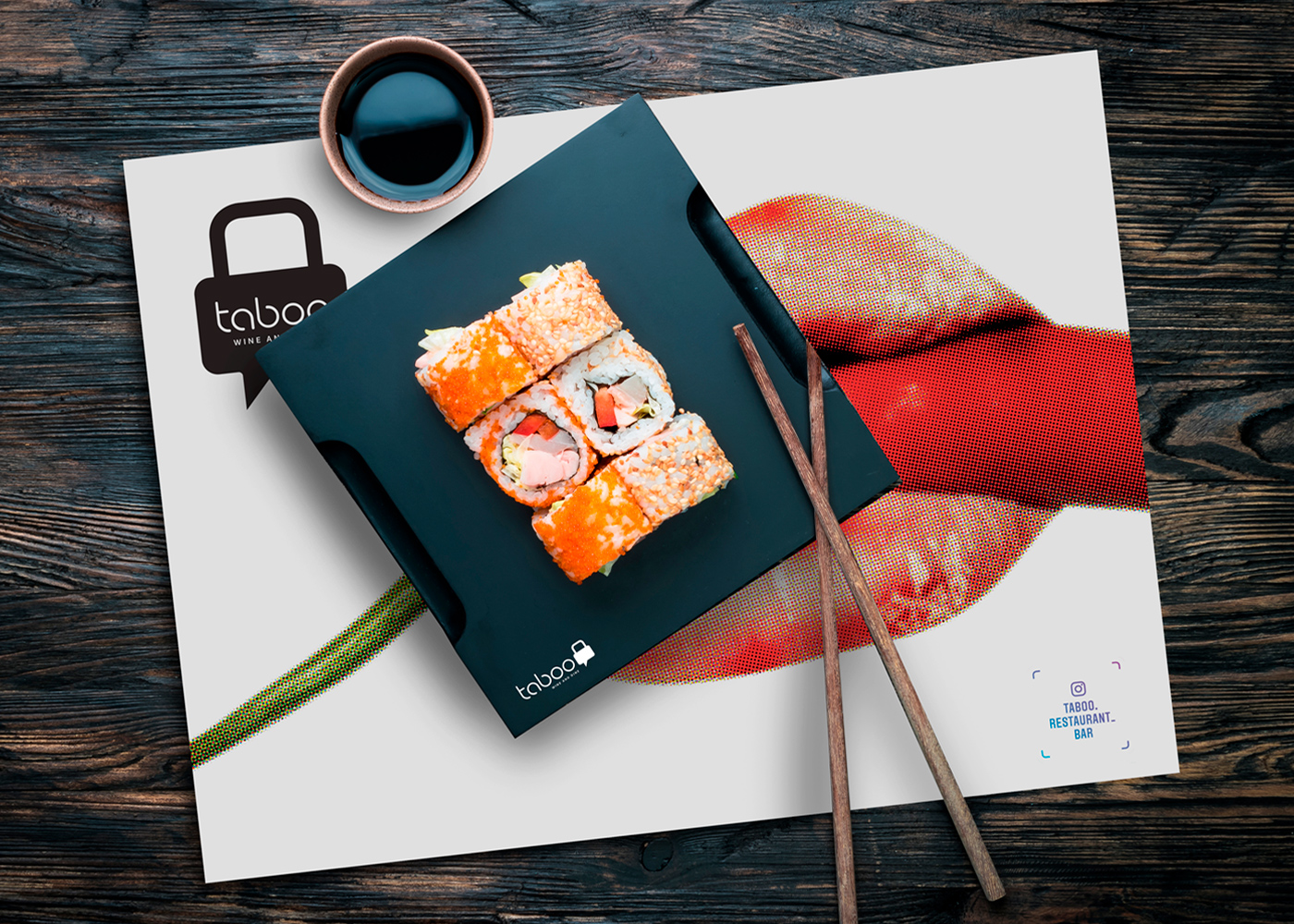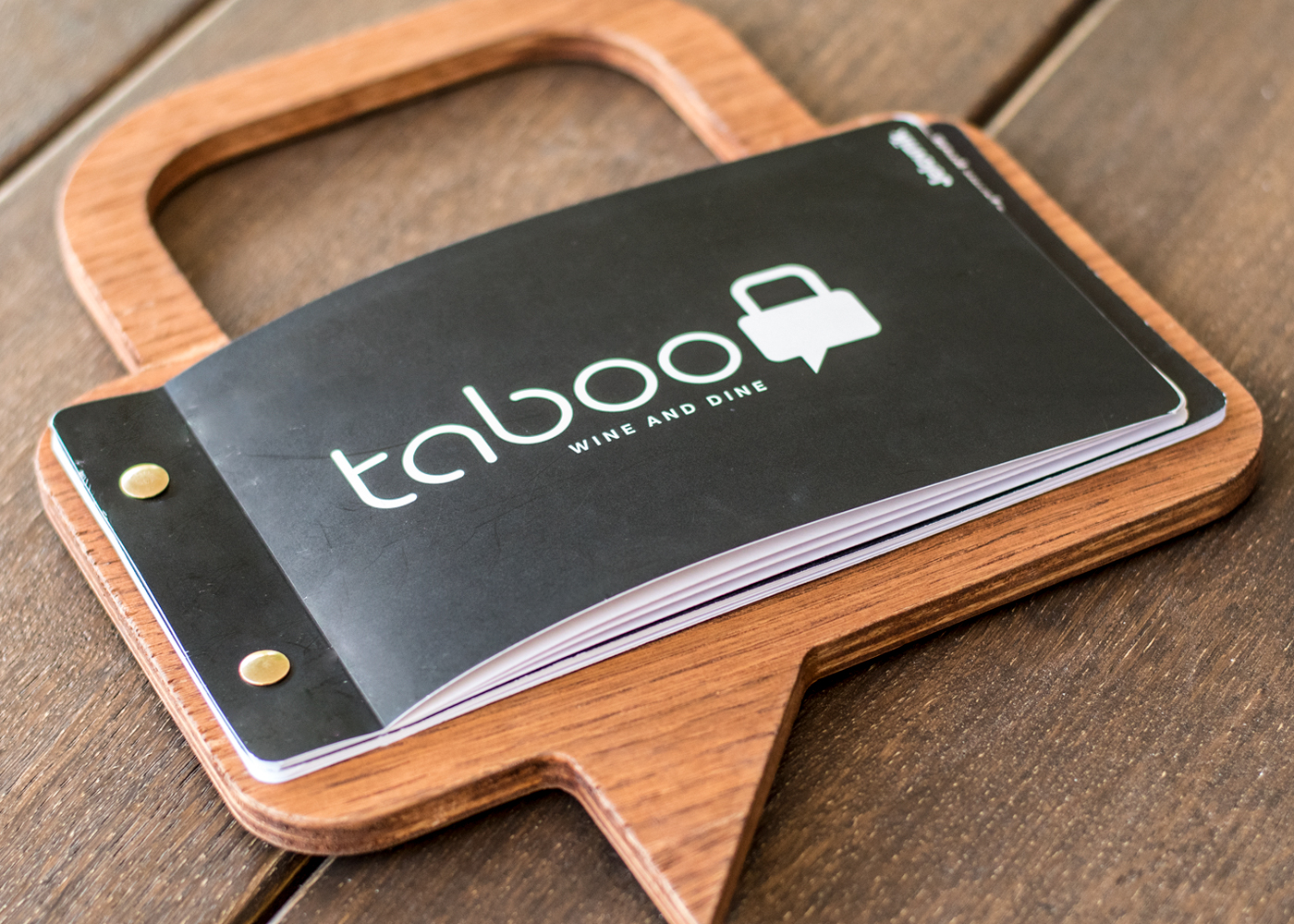 A well chosen name is an essential brand asset – the creation of the metaphorical name "Taboo" extends flawlessly into the restaurant business because of the potential for visualisation and storytelling. Names that are allusive of stories, people, cultural norms, social phenomena, mythology and so on are classified as metaphorical. The greatest quality of a metaphorical name is that it has the power to create immediate associations with desired themes, feelings and ideas. Our agency set a modern and sophisticated tone for the restaurant with a name that has 'rhythm.' After an extensive study of typefaces, a clean alphabet of light type was chosen. With flexibility in mind, we created a logo which is truly usable in a variety of applications.