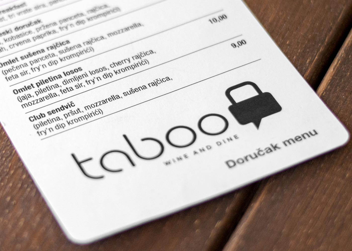 Taboo is a new restaurant based in Mostar, B&H, that offers deliciously prepared local and international specialties and drinks. Shift has worked extensively on the project, which has included the naming of the restaurant, creation of the visual identity and environmental graphics design. Our client wanted to create a place which will fascinate visitors, so we were asked to come up with an identity that embodies these aspirations, as well to create an inspiring name.