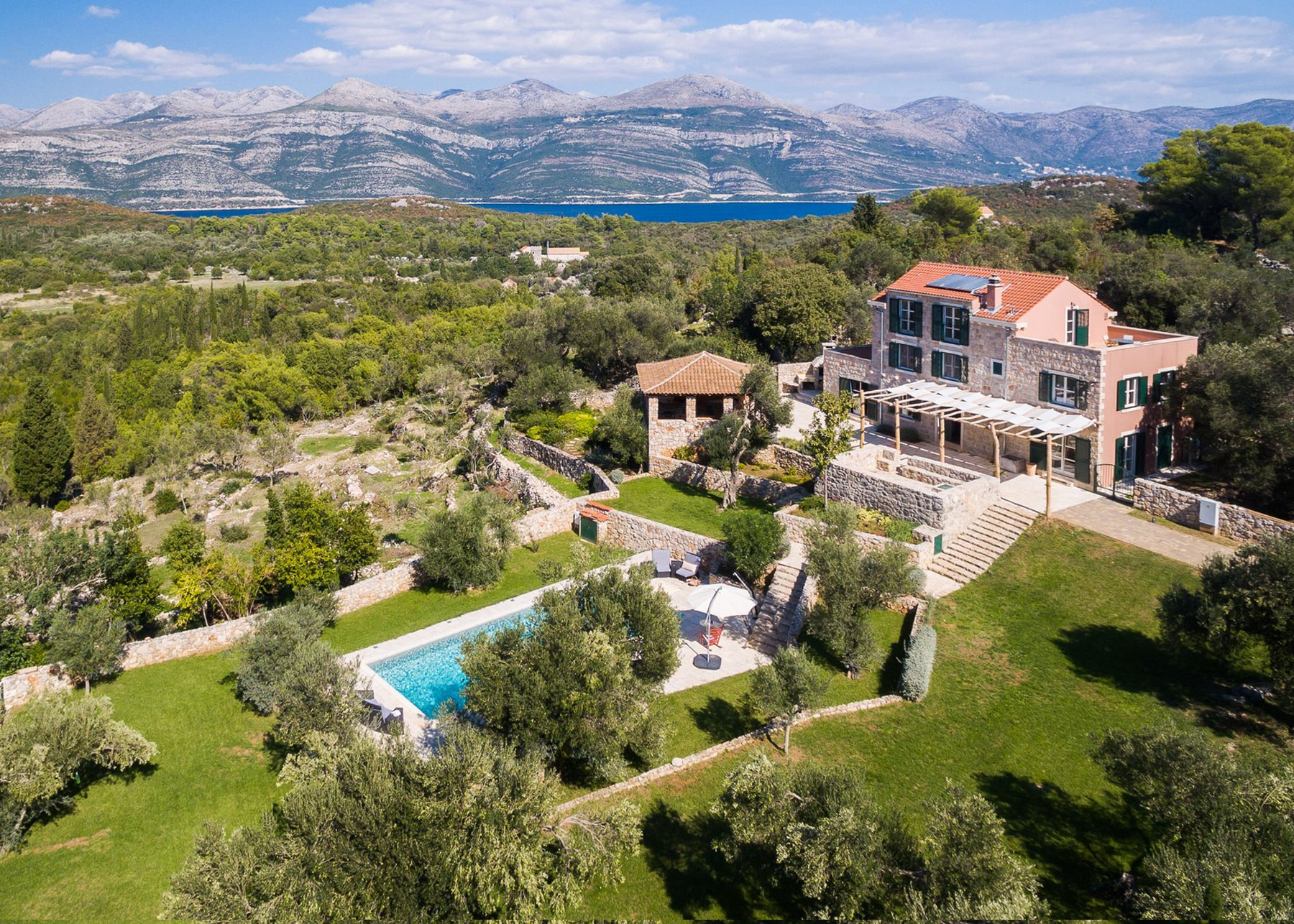 Our most recent project was the development of visual identity design for the luxury rustic-style residence built in an old mill at the Island of Šipan, Croatia. The residence is an iconic landmark of costal Dalmatia and the area's ancient architecture which embodies the rich history of the Dubrovnik Republic. The original stone house was recently converted into a modern facility with a renovation that transformed it into luxury tourist accommodation/ residence.