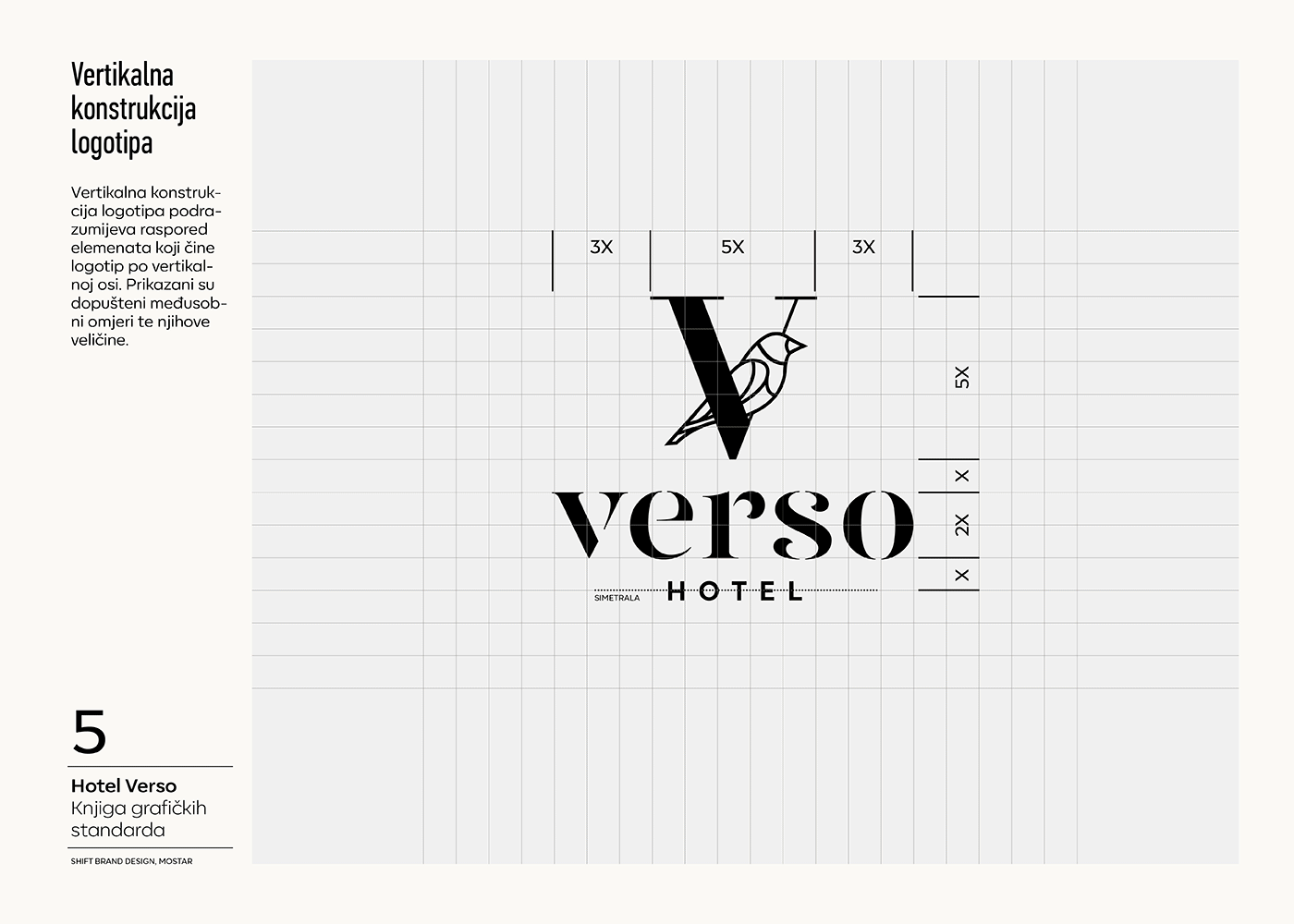 Shift created the verbal and visual identity for Hotel Verso, located in the city of Mostar. The project included development of verbal identity, visual identity design and brand guidelines. The brand identity had to reflect the energy and to capture the true spirit of Mostar, as there is a really special vibe in Mostar, especially in spring and summer months when the melodies of the Mostar siskin birds can be heard along the Radobolja River.