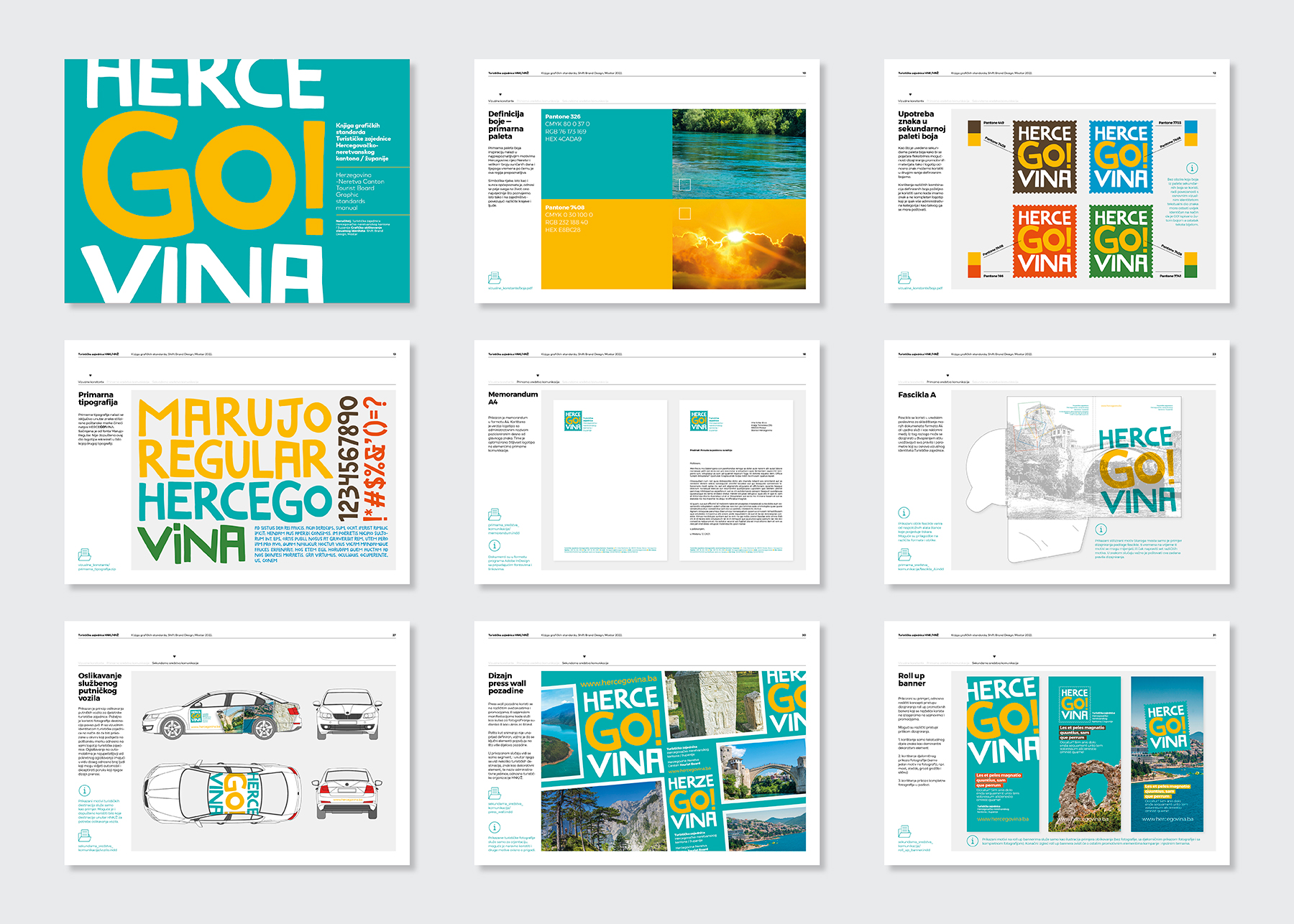 Projekt smo započeli istraživanjem i promišljanjem niza osjećaja i riječi koje turisti mogu povezati s Hercegovinom, a potom i obilježja po kojima je Hercegovina poznata. Nadalje, hercegovačko raspoloženje definirali smo prvenstveno korištenjem boja za simbolički učinak. Korištenje plave i žute boje za izražavanje prirodnih obilježja rijeke Neretve i sunčane klime pomaže brendu u još učinkovitijoj komunikaciji. Jedna od najvrjednijih značajki ovog vizualnog identiteta jest da je učinak ovoga tipografskog logotipa univerzalan - čak i na svim jezicima. "GO" unutar naziva čini prepoznatljiv verbalni identitet i naglašen je kao univerzalni poziv na akciju za globalnog putnika.